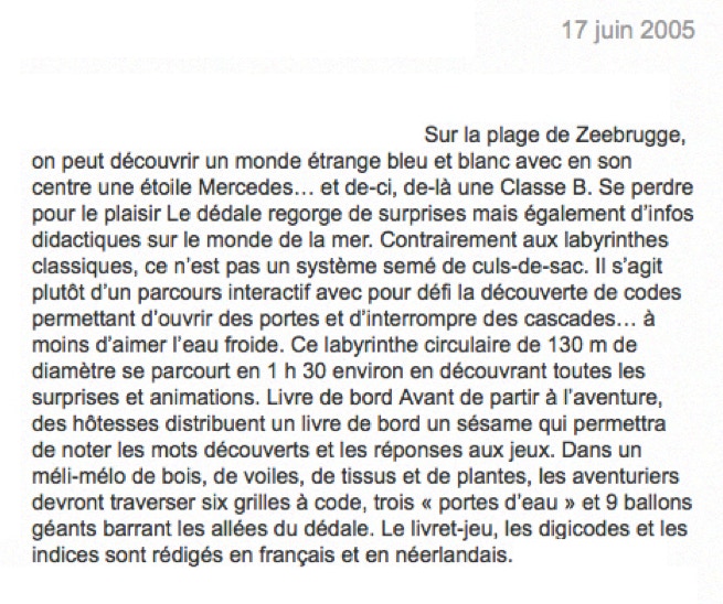 Création et réalisation du décors du Labyrinthe Mercedes de Zeebrugge